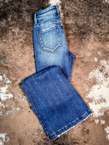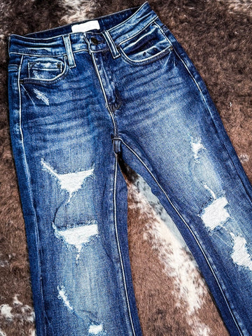 Crafted with a medium-dark wash, these jeans offer the perfect balance between everyday wearability and eye-catching detail. The distressed accents give them a naturally worn-in, lived-in feel—like you’ve broken them in after long rides under the desert sun. Whether you're heading to a country concert, a weekend rodeo, or a night out with your best gals, these jeans bring that touch of edgy Western fashion that turns heads and steals the show.