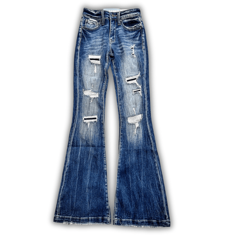 Do you blow out every hole in every pair of distressed jeans you've ever had? Us too! So we decided to find a flare that has patches behind the holes to keep that from happening. Who wants to throw away their favorite pair of jeans? The Rodesiler Flares are the epitome of the perfect distressed jean. The holes that would get bigger have patches, and the holes that are in places with less movement don't, to get the full look of distressing. Trust me, you'll want to add a pair of these to your wardrobe, stat!