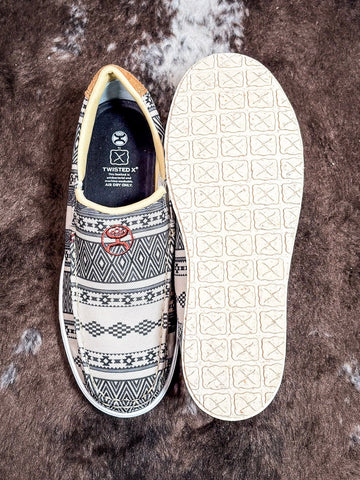 The Women's Hooey® Slip-On Loper Collection showcases a Twisted X® take on a classic shoe profile, with styling you've come to love from Hooey®. Utilizing unique materials, exciting patterns, and powerful pops of color, these Slip-On Lopers blend style, quality, and unrivaled comfort. The Hooey® Slip On Loper features a fabric upper, ecoTweed lining, removable moisture-wicking, antibacterial, machine washable footbed, and a molded rubber outsole infused with repurposed rice husk agricultural by-product. This Hooey® Slip-On Loper is a perfect balance of style and comfort.