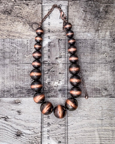 Bring a touch of rustic elegance to your look with the Laredo Fashion Necklace. Featuring a stunning gradient of deep bronze and copper-toned beads, this piece captures the glow of a desert sunset in timeless western style. Its bold yet refined design makes it a perfect match for denim, lace, or your favorite graphic tee. Lightweight, versatile, and effortlessly chic β this necklace adds the perfect finishing touch to any outfit.