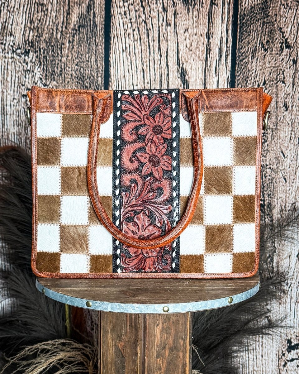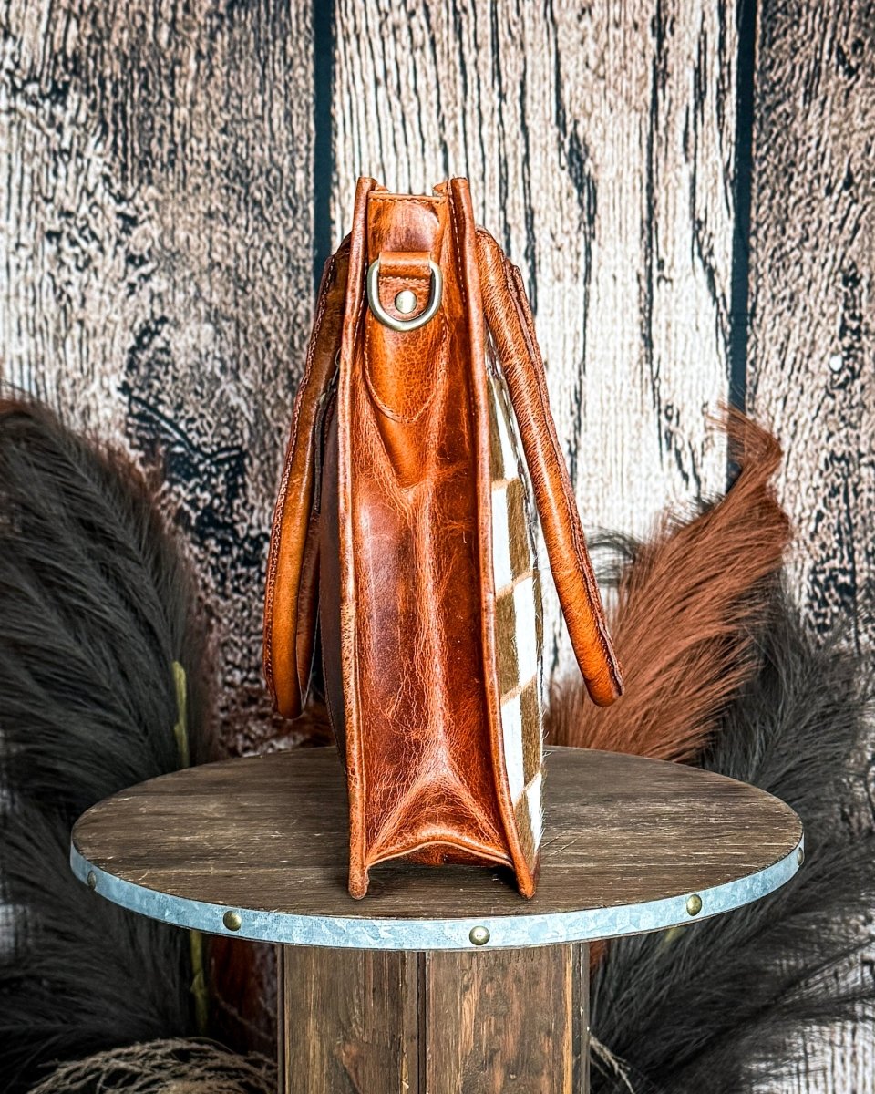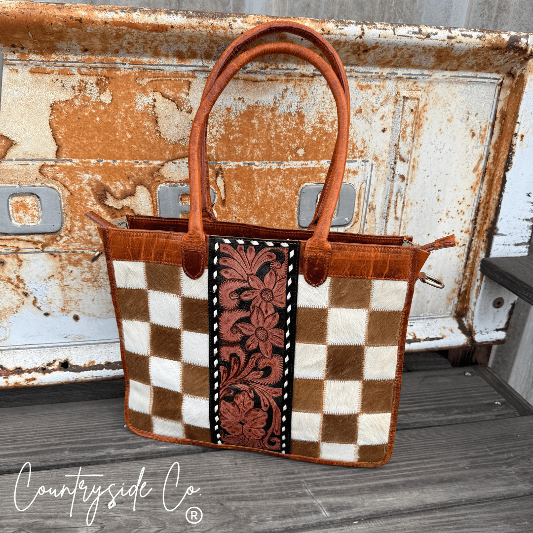 Virginia Checkered Leather and Hide Tote Bag by Countryside Co.